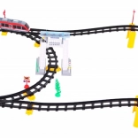 | | De grote treinset met sporen is bedoeld voor kinderen vanaf 3 jaar. De set bestaat uit 62 onderdelen, de lengte van het spoor is tot 396 cm. De trein wordt bediend met een afstandsbediening, rijdt met of tegen de klok in. De trein maakt rijgeluiden en de voor- of achterlichten branden afhankelijk van de rijrichting. De speelgoedtrein werkt op AA-batterijen - 2 x 1,5 V (afstandsbediening) en 3 x 1,5 V (trein). | |