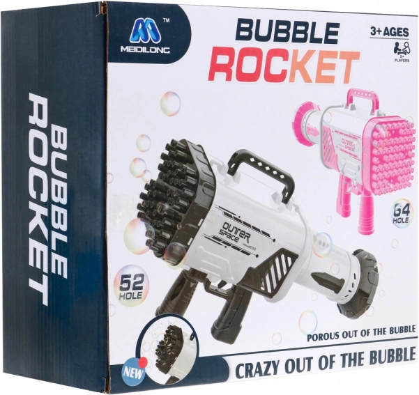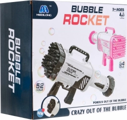 Een leuk bellenblaaspistool met futuristisch design dat dankzij de kop met 52 openingen honderden bellen maakt, met sfeervolle LED-verlichting. Inclusief een oplaadbare 3,7 V-accu, twee flesjes vloeistof en accessoires voor zorgeloos spelen. Kan ook worden gebruikt als een kleine draagbare ventilator – ideaal voor buiten en kinderfeestjes.
