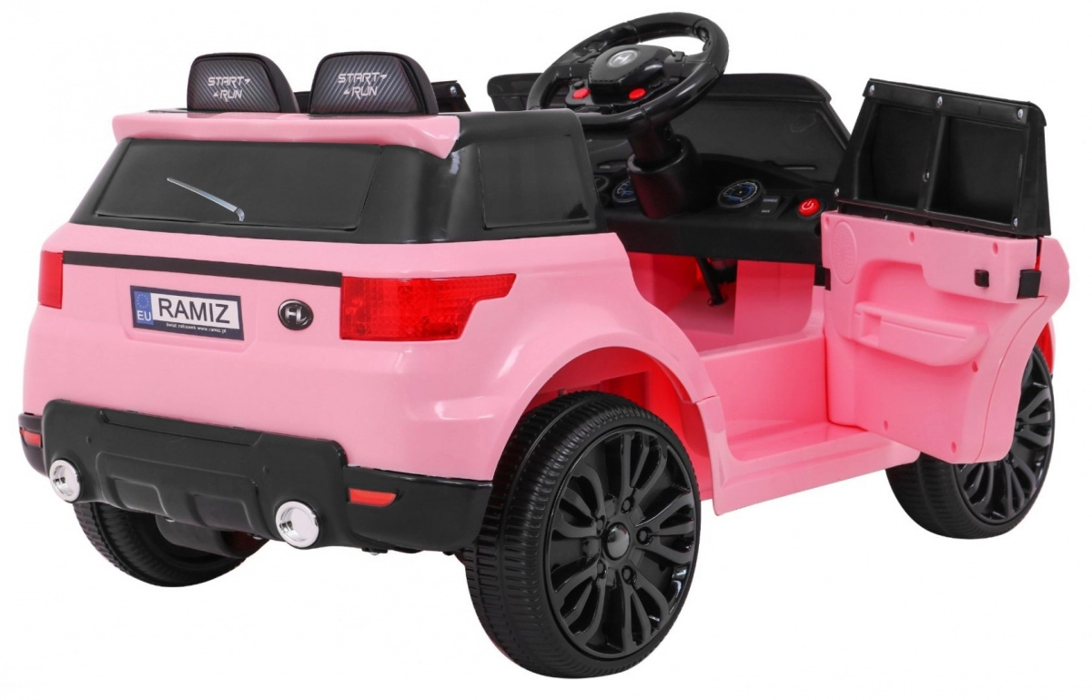 De roze elektrische speelgoedauto Start Run SUV verrukt kleine bestuurders met een modern design en functies zoals in een echte auto. Twee 30W-motoren, gevoed door twee 6V-accu’s, zorgen voor vlotte ritten, terwijl een soepele start, vooruit/achteruit en kunststof wielen ideaal zijn voor rijden binnen en buiten.