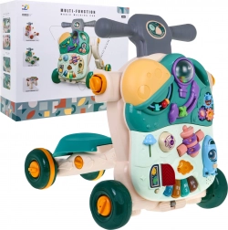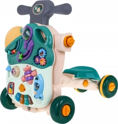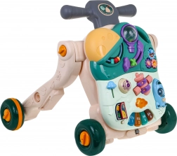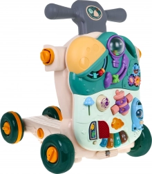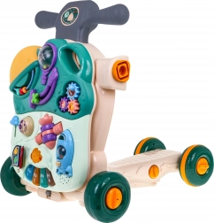 Het multifunctionele paneel biedt lichteffecten (knipperende lampjes, verlichte orgeltjes) en geluiden en melodieën. Kinderen worden geboeid door draaiwieltjes, schuivers, tandwielen, een afneembare raket met een draaiende bal en mini-biscuitjes, een bladertje om door te bladeren en kogeletjes. Dankzij de verstelbare hoogte, wielblokkering en anti-slip banden is spelen in elke modus veilig.