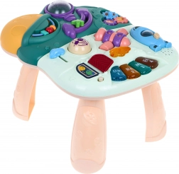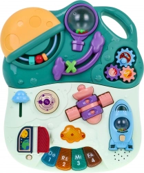Verlichte orgeltjes, melodieën, tandwielen, schuifjes, balletjes en een afneembare raket houden de aandacht vast en stimuleren fijne motoriek, zicht en gehoor.