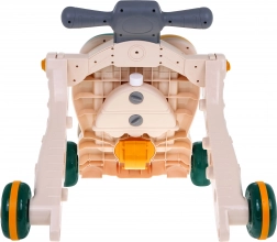 Dit interactieve 5-in-1 speelgoed groeit met je kind mee en past zich aan zijn of haar behoeften aan. Je verandert het eenvoudig van loopwagen naar loopfiets of step en in een handomdraai ook naar een stabiele activiteitentafel met een sensorisch paneel met ruimtethema. Kleurrijke elementen, knopjes, tandwielen en kralen nodigen uit tot ontdekken en ondersteunen fijne motoriek, logisch denken en zintuiglijke waarneming.