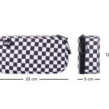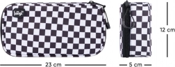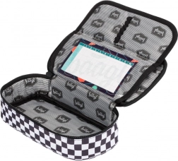 Stijlvolle BAAGL schooletui in zwart-wit schaakbord met een stevige constructie, een uitklapbaar tussenschot voor overzichtelijke opslag, een binnenvak met rits en een praktisch rooster voor lestijden. Ideaal voor scholieren, studenten en op kantoor. Geleverd zonder vulling.
