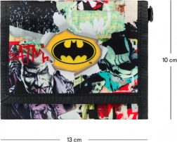 Deze unieke portemonnee met officiële DC Comics-licentie valt op door het uitgesproken Batman-design. Hij is uitgerust met meerdere vakken voor kaarten en contant geld, wat zorgt voor een uitstekende organisatie van je waardevolle spullen. De praktische klittenbandsluiting en het oogje voor bevestiging aan een karabijnhaak dragen bij aan de functionaliteit en veiligheid.