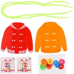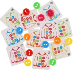 Educatief spel Knoop aannaaien is ontworpen om fijne motoriek te ontwikkelen en kinderen te leren kleuren te herkennen en te tellen. De set bevat:
