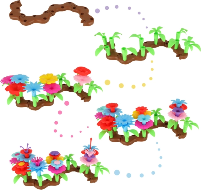 Met de creatieve bouwset kunnen kinderen vrij hun verbeelding uitdrukken en prachtige boeketten of tuinen creëren.