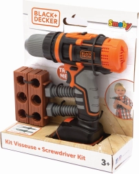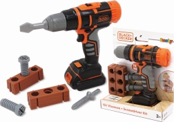 De elektronische accu-boormachine en schroevendraaier voor kinderen SMOBY BLACK&DECKER verrukt kleine klussers met realistische functies. Inclusief een “baksteen” met gaten om te oefenen, 3 verwisselbare bits, rechts-/linksom draaien, 2 snelheden en LED-verlichting bij de boor.