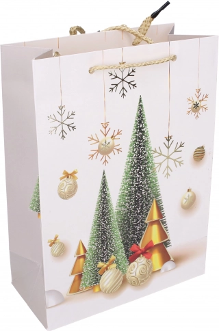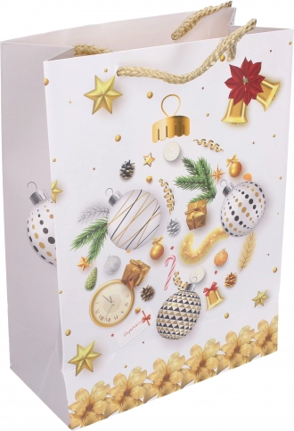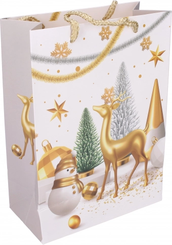 Stijlvol cadeautasje in maat S met afmetingen 18 × 24 × 8,5 cm, ideaal voor het verpakken van kleinere cadeaus. Biedt kerstmotieven, stevige uitvoering en comfortabel dragen dankzij de praktische handgrepen.