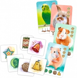 In het slimme en speelse spel Pets & Friends ga je op zoek naar de verloren speeltjes van huisdieren. Voor correct gevonden symbolen krijg je huisdierkaarten die je aan het einde van het spel punten opleveren en tijdens het spel nuttige speciale vaardigheden ontgrendelen. Het spel is ideaal voor gezinnen met kinderen en beginnende spelers – je leert het in een mum van tijd en het is leuk vanaf de eerste minuut.