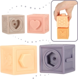 Dankzij het zachte, soepele materiaal zijn de onderdelen veilig vanaf 6 maanden en kunnen ze ook dienen als bijtspeeltje. Tijdens het spelen versterken kinderen op natuurlijke wijze hun grip, oog-handcoördinatie en trainen ze logisch denken bij het stapelen en eenvoudige sommen maken.
