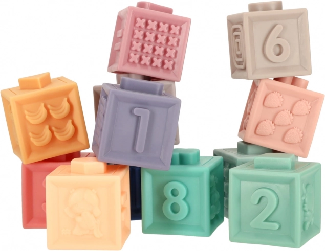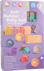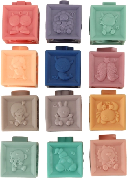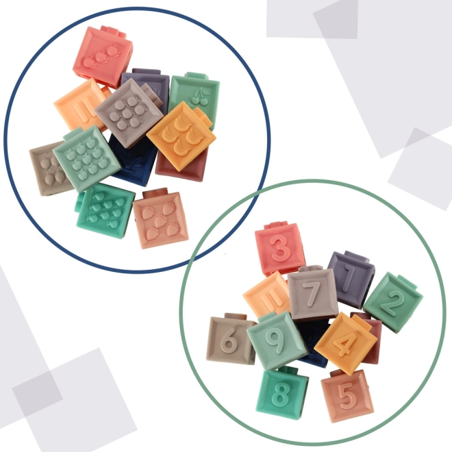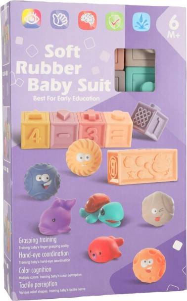 Deze sensorische set combineert plezier en leren in één. Zachte siliconen blokken met cijfers en tekens motiveren kinderen tot eerste rekenoefeningen, terwijl de gevarieerde texturen en reliëfs de tast en concentratie ontwikkelen. Ballen en blokken zijn ideaal voor torens bouwen, sorteren en vrij spel.