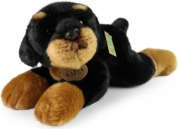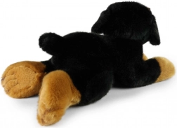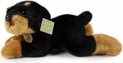 Schattige pluchen Rottweiler in liggende houding van 30 cm die zowel kinderen als volwassenen zal verrassen. Hij heeft een realistische afwerking, hoogwaardige zachte pluche en een eco‑friendly vulling van gerecyclede PET‑flessen die ook voor de allerkleinsten veilig is.