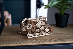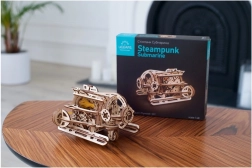 Met het houten model van de steampunk-onderzeeër duik je in de wereld van mechanica en gedetailleerd design. Dit model is uitgevoerd in steampunkstijl, die vintage en moderne elementen combineert. De onderzeeër wordt aangedreven door een rubberen band, kan rechtuit bewegen en sturen, en is dankzij de Start/Stop-schakelaar eenvoudig te bedienen.
