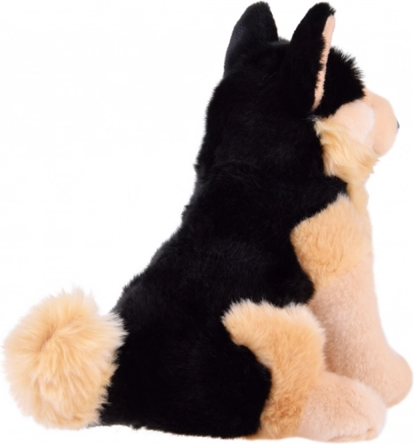 Deze zittende pluchen Duitse herder uit de eco friendly-lijn is ontworpen met oog voor detail. Realistische verhoudingen, sprekende ogen en de combinatie van beige en zwarte vacht maken hem tot een geweldige vriend voor kleine dierenliefhebbers. Het zachte oppervlak voelt prettig aan en nodigt uit om te knuffelen.