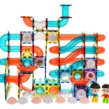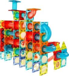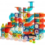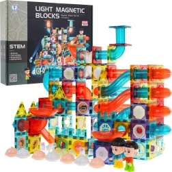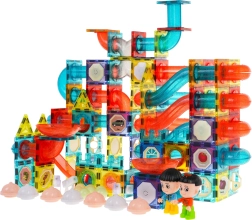 Ontdek een wereld vol plezier met deze kleurrijke magnetische bouwset voor kinderen vanaf 3 jaar. De set bevat 292 onderdelen waarmee je een knikkerbaan in elke gewenste opstelling kunt bouwen. Sommige onderdelen zijn op batterijen en verlichten de baan met pulserende lampjes wanneer ze worden ingeschakeld, wat het spel nog interessanter maakt.