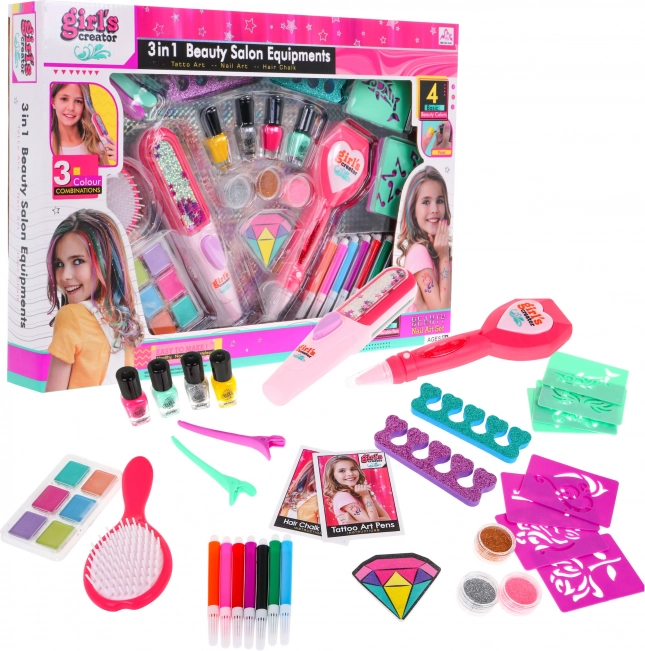 Schoonheidscreator 3-in-1 voor meisjes – Gekleurd haar, Manicure, Tatoeages