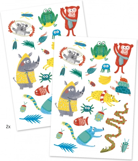 Geef je fantasie de ruimte met kleurrijke tijdelijke tattoos van het Franse merk DJECO. De collectie met junglediertjes brengt schattige motieven die perfect zijn voor kinderfeestjes, carnaval en dagelijks plezier. De tattoos zijn huidvriendelijk en geschikt voor handen, gezicht en benen.