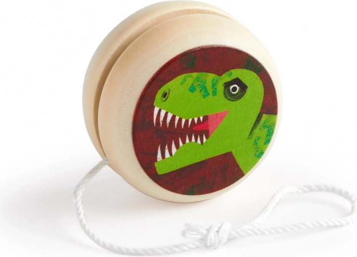 Klassiek houten jojo met een T. rex-motief dat kinderen vanaf 6 jaar zal verrassen en tegelijk coördinatie, behendigheid en fijne motoriek ontwikkelt. Bedrukt met niet-giftige verven, de verpakking is voor 90% gerecycled en het product voldoet aan strenge CPSIA-, ASTM- en CE-normen.