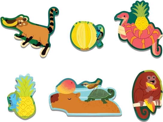 Neem kinderen mee naar een tropisch paradijs vol kleuren, dieren en sappige vruchten. De geurende puzzel met fruitjungle-thema stimuleert fijne motoriek, concentratie en verbeelding, en dankzij de stukken met de geur van banaan, ananas en mango voegt het een speelse zintuiglijke beleving toe aan het leggen. Nauwkeurige stans, matte afwerking en een gladde achterzijde zorgen voor comfortabel puzzelen zonder schittering.