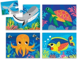 Deze creatieve 4-in-1 set bevat vier losse puzzels met schattige motieven uit de onderwaterwereld – een walvis, een schildpad, een octopus en een visje. De stukjes zijn gemaakt van gerecycled karton met een matte afwerking voor levendige kleuren en een prettig gevoel. Elke puzzel heeft een ander aantal stukjes (4, 6, 9, 12), zodat kinderen stap voor stap kunnen doorgroeien en hun fijne motoriek, geduld en logisch denken ontwikkelen.