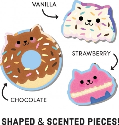 Ontdek een speelse puzzel met geur die het leggen combineert met een reukervaring. De puzzel met het thema kattenkafé biedt 60 stukjes, inclusief 6 speciaal gevormde stukken, waarvan er 3 geurig zijn met favoriete geuren – aardbei, vanille en chocolade. Hoogwaardige afwerking van gerecycled papier, een matte toplaag en een stevige doos zorgen voor een lange levensduur en veel puzzelplezier.