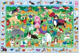 De Mudpuppy puzzel Leg en Zoek: Hondendag combineert slim puzzelen met een zoekspel dat observatievermogen, geduld en fijne motoriek ontwikkelt. Nadat de scène vol honden is gelegd, kunnen kinderen meer dan 40 verborgen figuurtjes zoeken in de rand rond de afbeelding – ideaal vermaak voor kinderen vanaf 4 jaar.