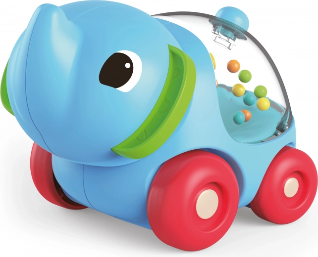 Deze kleurrijke olifant-rammelaar op wieltjes is het ideale eerste wagentje voor baby’s. Bij beweging produceert hij een rammelend geluid dat kinderen motiveert om te ontdekken, kruipen en het speelgoed voor zich uit te duwen.