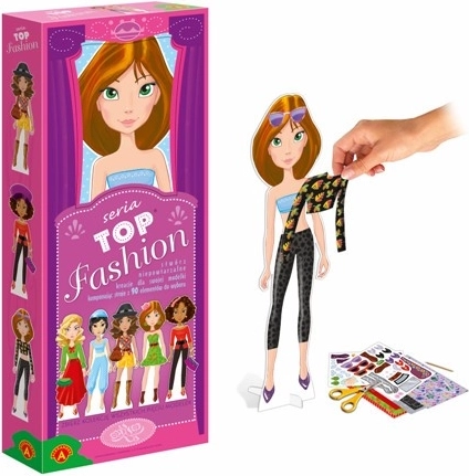Ontdek de creatieve modewereld met de serie Top Fashion – verzamelbare modellen waarmee je ontelbare originele creaties maakt. Knip uit, combineer en bevestig de outfitjes eenvoudig op het model met dubbelzijdige tape. De collectie bevat 5 verschillende modellen; hoe meer je er hebt, hoe meer outfitcombinaties je kunt creëren. Zelfklevende elementen voegen stijlvolle details toe en zodra je het model rechtop zet, kun je de uiteindelijke outfit effectvol tentoonstellen.