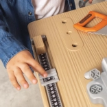 Complete inklapbare werkplaats voor kleine klussers met 100 accessoires en 3 werkzones: een mechanische werkplaats met tafel, een verfstation met gootsteen en een loodgieterszone met buizen. Inclusief boormachine, bankschroef, cirkelzaag en een auto om te monteren. Dankzij de inklapbare zijkanten en wielen is hij eenvoudig te verplaatsen en stimuleert hij creativiteit, fijne motoriek en oog-handcoördinatie.