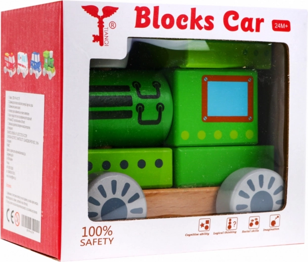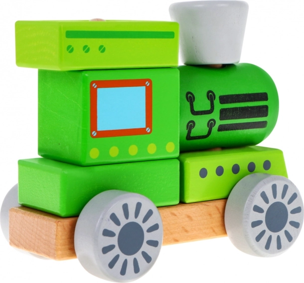 Dit houten treintje is een ideale eerste bouwset voor nieuwsgierige kinderen vanaf 24 maanden. Dankzij twee pinnetjes op het platform kunnen kinderen 6 houten blokken stapelen en combineren tot een locomotief, hun fijne motoriek trainen en vormen en kleuren leren herkennen. De robuuste houten constructie en veilige, niet-giftige verven zorgen voor een lange levensduur en zorgeloos speelplezier.