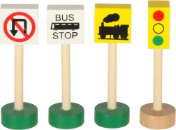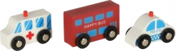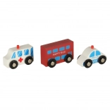 Deze houten set stelt kinderen in staat hun eigen stad te creëren met verschillende voertuigen en gebouwen.