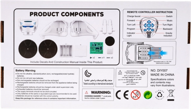De inhoud van de verpakking omvat alle benodigde onderdelen: de robot heeft een afmeting van ongeveer 17 cm x 16 cm x 12,5 cm. Het pakket met afmetingen 30 cm x 17 cm x 7,5 cm bevat ook een gedetailleerde montagehandleiding. Het is een geweldige manier om de vaardigheden van kinderen op het gebied van elektronica en robotica te ontwikkelen.