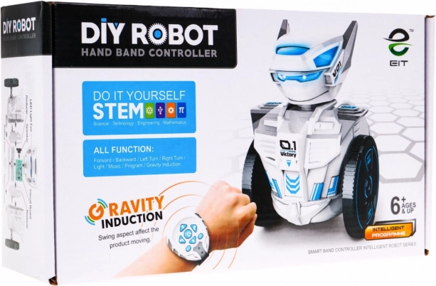 De intelligente robot die met een horloge wordt bestuurd, biedt een innovatieve manier van spelen en leren. Met zijn hulp leren kinderen creatief problemen op te lossen terwijl ze plezier hebben. Het bedienen van de robot is heel eenvoudig – kantel simpelweg de met een horloge met zwaartekrachtmechanisme uitgeruste hand en de robot beweegt in de gewenste richting. Als alternatief kunnen de knoppen op het horloge worden gebruikt voor nauwkeurigere controle.