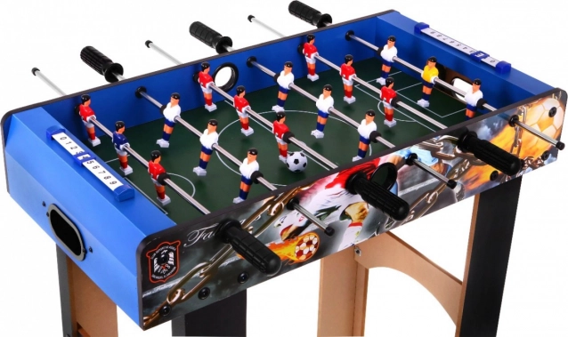 Geniet van een voetbalwedstrijd in het comfort van je eigen huis met deze tafelvoetbal, ideaal voor vermaak voor het hele gezin. Het stevige MDF-oppervlak met een elastische laminaatlaag en geperforeerde handgrepen minimaliseert het wegglijden van de handen, wat bijdraagt aan vloeiender spel. Verder beschikt hij over professioneel passende geleiders die niet vastlopen en handgrepen met blokkering van de maximale uitslag.