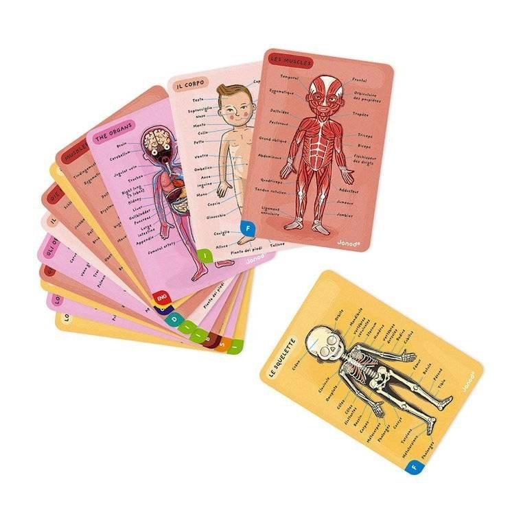Ontdek een leuke manier om anatomie te leren met de magnetische puzzel van JANOD. Kinderen leren de namen van lichaamsdelen, organen, botten en spieren in maar liefst 11 talen. De set bevat een magnetisch bord, 18 leerkarten en 76 magnetische stukjes – ideaal voor de ontwikkeling van fijne motoriek, concentratie en spelenderwijs leren.