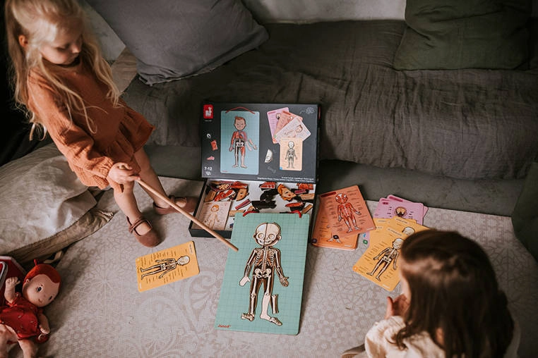 De magnetische puzzel van het menselijk lichaam van JANOD is een slimme educatieve speelgoedset die kinderen de verschillende lagen van het lichaam inzichtelijk laat zien – van het skelet en de spieren tot de organen en het uiterlijk. Dankzij de duidelijke kaarten in 11 talen breiden kinderen hun woordenschat uit en begrijpen ze gemakkelijk hoe het menselijk lichaam werkt. Leren is intuïtief, leuk en stimuleert logisch denken.