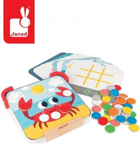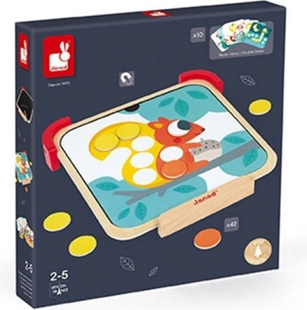 Ontdek de slim ontworpen magnetische puzzel van JANOD voor kinderen van 2–5 jaar, die plezier en leren combineert. Het houten bord met magneten en voorbeeldkaarten stimuleert kleurenherkenning, fijne motoriek en oog-handcoördinatie. Dankzij de dubbelzijdige kaarten en 42 gekleurde schijfjes voeren kinderen eenvoudig opdrachten uit, trainen ze hun logisch denken en kunnen ze op het bord ook met krijt schrijven en tekenen. De elegante verpakking maakt er een prachtig cadeau van.
