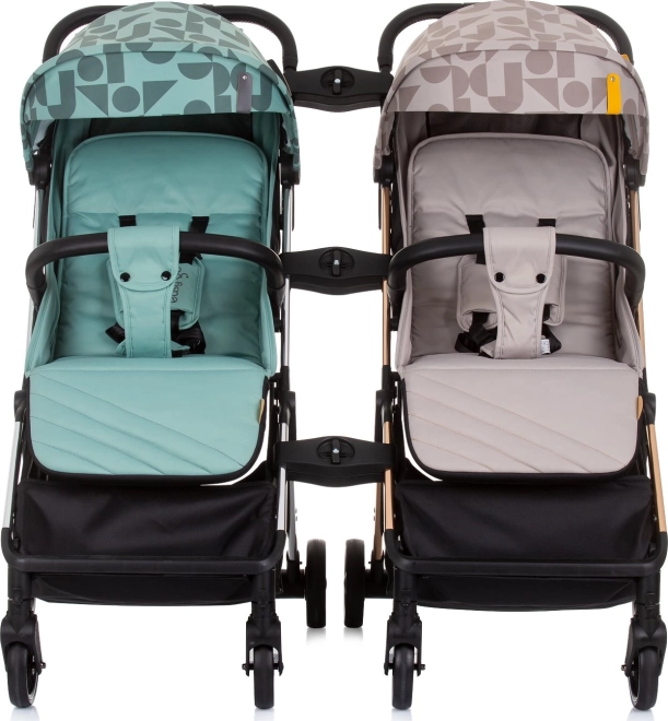 Geveerde snelspanner-wielen en een achterste segmentrem zorgen voor een soepele en veilige rit. Gepolsterde 5-puntsveiligheidsgordels, een verstelbare rug- en beensteun en een afneembare beugel met handgestikte eco-leren bekleding zorgen voor comfort voor kind én ouder. Ook aanwezig: mesh voor betere luchtcirculatie en een ruime boodschappenmand.