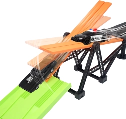Autobaan met obstakel Fast & Furious. Baans lengte 3,3 m. Afmetingen 153×58 cm. 2 auto’s inbegrepen. 6x AA-batterijen voor het batterijvak niet inbegrepen. Montagehandleiding inbegrepen.