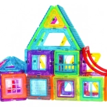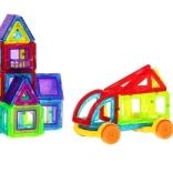 |  | De grote set magnetische blokken is een speelgoed bedoeld voor kinderen vanaf 3 jaar, maar ook oudere kinderen en zelfs volwassenen spelen er graag mee. De bouwset stimuleert creativiteit en leert geduld en concentratie. De blokjes zijn licht en duurzaam en je kunt er geweldige constructies mee bouwen. Aan de slag! | Inhoud van de set | * blokken 184 onderdelen * 4 onderstellen met twee wielen, afmetingen ca. 9 cm x 5 cm, * 8 onderdelen voor de constructie van een reuzenrad, * 2 vijfhoeken, * 2 zeshoeken met afmetingen ca. 8,5 cm x 7,5 cm, * 8 ramen met balustrade ca. 4 cm x 2,5 cm, * 2 driedubbele vierkanten ca. 13 cm x 4,5 cm, * 6 dubbele vierkanten ca. 8,5 cm x 4,5 cm, * 56 vierkanten ca. 4,5 cm x 4,5 cm, * 24 ramen ca. 7,5 cm x 4 cm, * 6 trapezia ca. 6 cm x 4 cm, * 6 extra onderdelen, * geïllustreerde handleiding. * verpakking ca. 51 cm x 35 cm x 5 cm. |