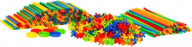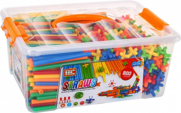 Grote bouwset – bouwrietjes is een speelgoed voor kinderen vanaf 3 jaar. De set bevat maar liefst 800 onderdelen waarmee uw kind vele prachtige constructies kan bouwen, zoals torens, voertuigen, bruggen, gebouwen enz. De staafjes verbinden perfect met elkaar via connectoren. Ze worden geleverd in verschillende kleuren: groen, rood, blauw, oranje en geel. De hele set is verpakt in een kunststof doos met draaghandvat. Bij de set zit ook een geïllustreerde handleiding met voorbeelden van constructies die kunnen worden gebouwd. Spelen met rietjes stimuleert de fantasie van het kind en leert creatief en logisch denken.