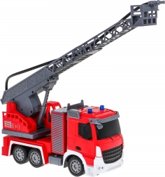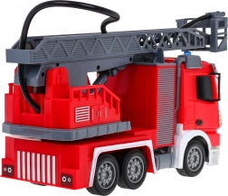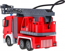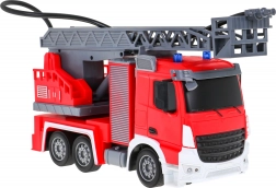 Grote interactieve brandweerauto met een beweegbare en draaiende ladder, waterslang en vele functies, bedoeld voor kinderen vanaf drie jaar. Het voertuig wordt bestuurd met een afstandsbediening op 2,4 GHz. Het rijdt vooruit en achteruit en stuurt naar rechts en links. Het heeft rubberen banden en rubberen spiegels. De speelgoedauto heeft een geluidsfunctie – geluid van het heffen en uitschuiven van de brandweerladder – en een lichtfunctie – koplampen aan de voorkant en knipperende lichten aan de bovenkant van het voertuig tijdens het heffen en laten zakken van de kraan. De brandweerladder kan worden uitgeschoven, omhoog en omlaag worden bewogen en 180 graden worden gedraaid. De auto is uitgerust met een waterslang waar echt water uit spuit! Het speelgoed wordt gevoed door een 500 mAh 3,7 V batterij (meegeleverd), de afstandsbediening door 2 x AA 1,5 V batterijen (niet meegeleverd).