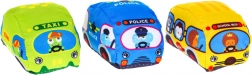 Kleurige stoffen autootjes met schattige bestuurders zijn licht, zacht en ideaal voor kleine handjes. Ze ondersteunen leuk en veilig spelen zonder harde randen.