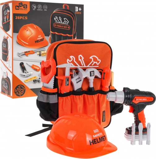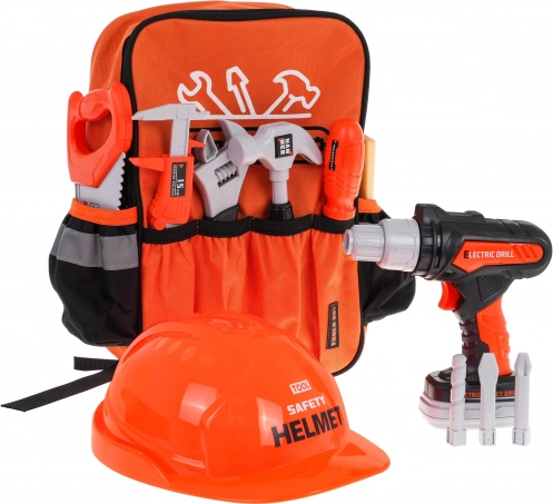 Ontdek de rijk uitgeruste kinderset gereedschap in een praktische rugzak voor kleine doe-het-zelvers vanaf 3 jaar. Inclusief een interactieve accuboormachine met verwisselbare bits, een veiligheidshelm en een hele reeks kunststof gereedschappen voor veilig spelen. De lichte rugzak met hoofdvak met ritssluiting en buitenvakken houdt alles overzichtelijk bij de hand en stimuleert creativiteit en fijne motoriek.
