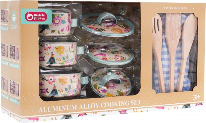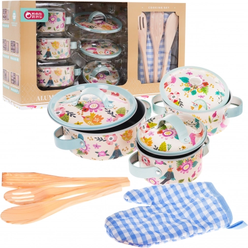 Kinder set van aluminium pannen is de perfecte keuze voor kleine koks vanaf 3 jaar. Bevat 10 elementen inclusief pannen, keukentoebehoren en een ovenhandschoen voor realistisch speelplezier.