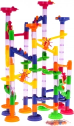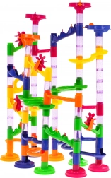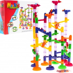 Kleurrijke en duurzame knikkerbaan voor kinderen vanaf 3 jaar die creativiteit en manuele vaardigheden ontwikkelt. Het is ideaal voor individuele constructie en het volgen van de beweging van de knikkers.