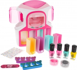 De nagellakset voor kinderen is geweldig plezier voor kleine mode-enthousiastelingen. Het bevat een interactieve nageldroger die wordt aangedreven door 3 AA-batterijen en biedt een realistisch droogeffect samen met een zachte luchtstroom en een verlicht controlelampje. Speciale compartimenten in de droger maken het mogelijk om lakken en accessoires direct in het apparaat op te bergen. De lakken zijn gemaakt van niet-giftige materialen en zijn eenvoudig af te wassen met warm water.