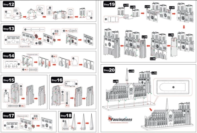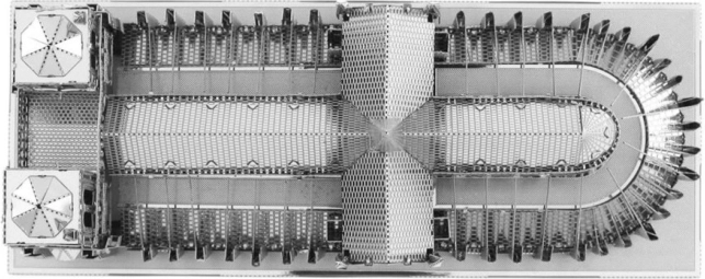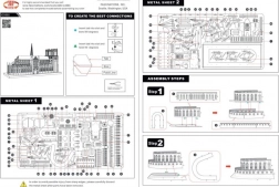 Haal de afzonderlijke onderdelen uit de metalen plaatjes; gebruik indien nodig een kleine zijkniptang (niet inbegrepen). De onderdelen worden met elkaar verbonden via sluitingen die bestaan uit een lipje en een opening. Buig het lipje om met kleine, fijne tangen (niet inbegrepen) en verbind stap voor stap alle sluitingen tot er een zeer realistisch meesterwerk ontstaat!
