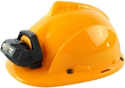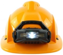 De hoofdlamp aan de voorzijde van de helm verlicht de ruimte direct voor je – je handen blijven vrij om te werken.