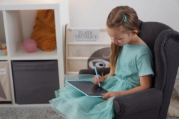 De tablet heeft een slanke, moderne vormgeving die prettig in de hand ligt en in de rugzak past. De stylus zorgt voor nauwkeurige lijnvoering en laat een schoon oppervlak achter zonder rommel. Het gekleurde LCD-paneel stimuleert creativiteit en leren op speelse wijze, thuis en onderweg.